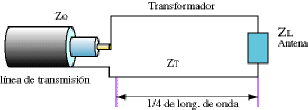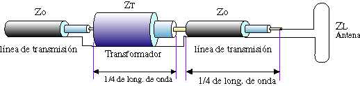 de longitud igual a l/4 (un cuarto de onda) de una impedancia tal que a su entrada