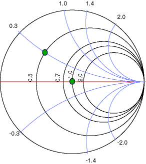 por ejemplo, z=2 ohms. Este es el valor de la impedancia normalizada; la impedancia