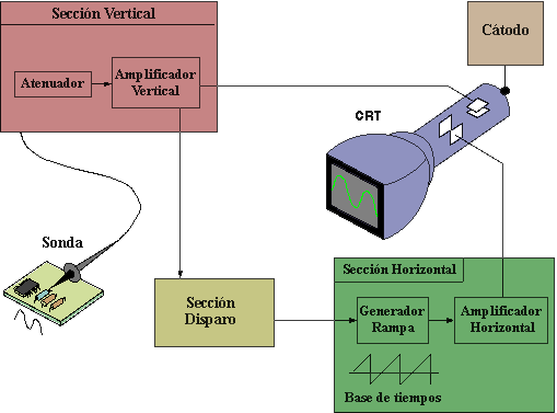 sistema horizontal del osciloscopio para visualizar el tiempo. También se suele