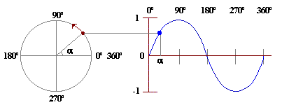 circulación de un punto sobre un circulo de 360º. Un ciclo de la señal