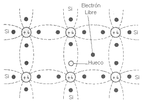 los átomos de silicio, y la unión incompleta dará lugar a un hueco.