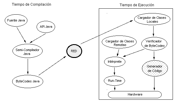 Para establecer Java como parte integral de la red, el compilador Java compila su código a un fichero objeto de formato independiente de la arquitectura de la máquina en que se ejecutará. Cualquier máquina que tenga el sistema de ejecución (run-time) puede ejecutar ese código objeto, sin importar en modo alguno la máquina en que ha sido generado. Actualmente existen sistemas run-time para Solaris 2.x, SunOs 4.1.x, Windows 95, Windows NT, Linux, Irix, Aix, Mac, Apple y probablemente haya grupos de desarrollo trabajando en el porting a otras plataformas.