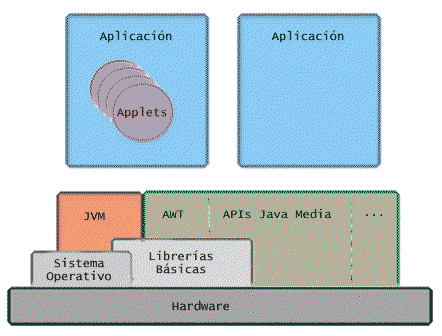 En una representación en que tuviésemos que indicar todos los elementos que forman parte de la arquitectura de Java sobre una plataforma genérica, obtendríamos una figura como la siguiente: