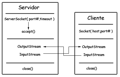 El cliente y el servidor se comunican con manejadores InputStream y OutputStream.