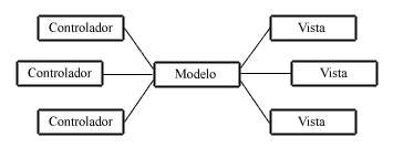 En la figura siguiente, vemos la arquitectura MVC en su forma más general. Hay un Modelo, múltiples Controladores que manipulan ese Modelo, y hay varias Vistas de los datos del Modelo, que cambian cuando cambia el estado de ese Modelo.