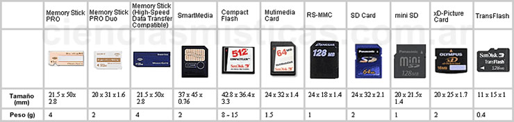 Compact Flash: Es el formato mas extendido. Su conexionado es