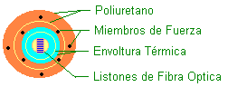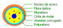 Núcleo, cubierta, tubo protector, búferes, miembros de fuerza, y una o más capas protectoras.