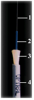 Una fibra es un conductor óptico de forma cilíndrica que consta del núcleo (core), un recubrimiento (clading) que tienen propiedades ópticas diferentes de las del núcleo y la cubierta
