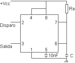 disparo, la salida se mantiene a nivel alto (Vcc) hasta transcurrido el tiempo determinado