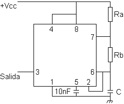 Salida a nivel alto: T1 = 0.693*(Ra+Rb)*C