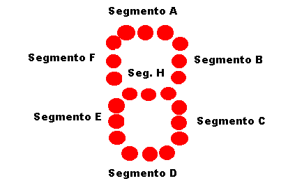 y cada uno de los leds del display puede verse en la siguiente figura: