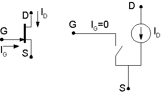 Tal y como se ha visto, las curvas de funcionamiento de los transistores MOS son similares a las de los JFET. Por ello, todos admiten una representación circuital análoga.