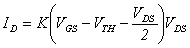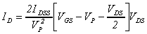 Estas condiciones equivalen a admitir que el canal de conducción no se estrangula por la zona de deplección en inversa tanto en el extremo de drenaje como en la fuente. El valor que toma la corriente ID es