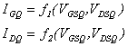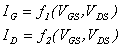 De entre las diversas opciones posibles, para la deducción del modelo se escogen como variables independientes las tensiones VGS y VDS, mientras que las dependientes son las corrientes IG e ID. De este modo, las ecuaciones características del transistor vendrán dadas por dos funciones f1 y f2 tales que: