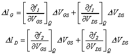 Supongamos que sobre este punto de operación Q se añade una componente alterna, caracterizada por un VGS y por un VDS. Las oscilaciones de las corrientes pueden calcularse como: