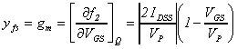 • yfs : Transconductancia (-1). Se suele nombrar como gm