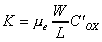 • C'OX es la capacidad por unidad de superficie del condensador que forman el metal de la puerta con el canal. Depende fuertemente del espesor del óxido de puerta.