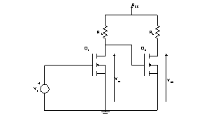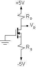 • Calcular los parámetros que toman las resistencias RD y RS del circuito de la figura para que el transistor opere con una ID=0.4mA y VD=1.Datos: VTH=2V; K=0.4mA/V2