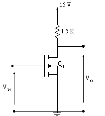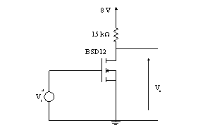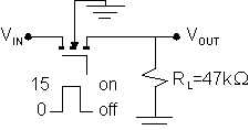 • El circuito de la figura representa a un transistor actuando como un interruptor. Cuando se polariza la puerta con una tensión de 15V, el transistor deja pasar una corriente para alimentar la resistencia de carga. Al polarizar con 0V la puerta, el transistor permanece en corte. Se pide: