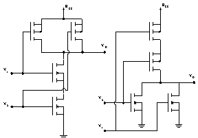 • El siguiente circuito lógico está diseñado según la técnica CMOS (Complementary-MOS).