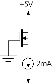Figura 5: Esquema del transistor JFET de canal N polarizado con VGS = -2 V y VDS = 5 V