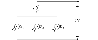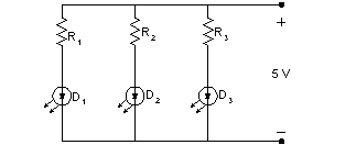 y R3 para que se iluminen los tres diodos con If = 20 mA