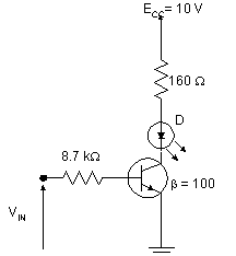 En el siguiente circuito, D1 es un LED de color rojo, D2
