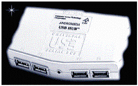 Lo que se debe olvidar a la hora de comprar un dispositivo USB es  que cada dispositivo puede funcionar como HUB, es decir, incluir uno o más conectores USB, de modo que podamos conectar un dispositivo a otro en cadena, y así, por ejemplo un teclado, puede incluir dos conectores USB, uno para el ratón y otro para el joystick, de igual modo el monitor puede servir de HUB y permitir conectar a él por ejemplo los altavoces, o el teclado, al cual a su vez se conectan el ratón y el joystick, etc. Hay que tener en cuenta que muchos dispositivos USB actuales no son más que conversiones de dispositivos existentes por lo que mucho aún no implementan su uso como HUBs, por lo que quizás valga la pena esperar un poco a que haya más dispositivos disponibles.